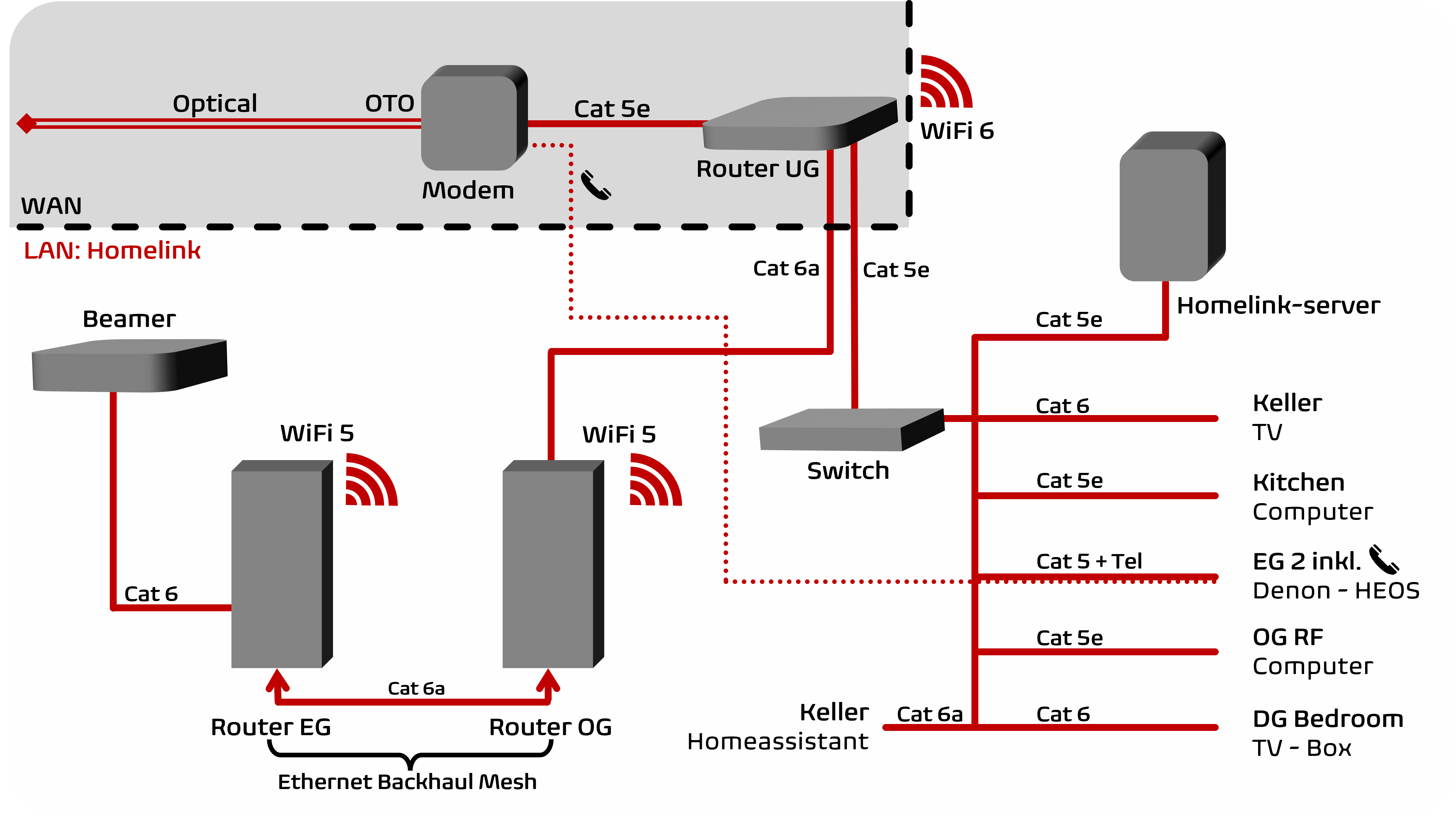 - LAN: “Local Area Network”: Internal, domestic Network, Devices can interact